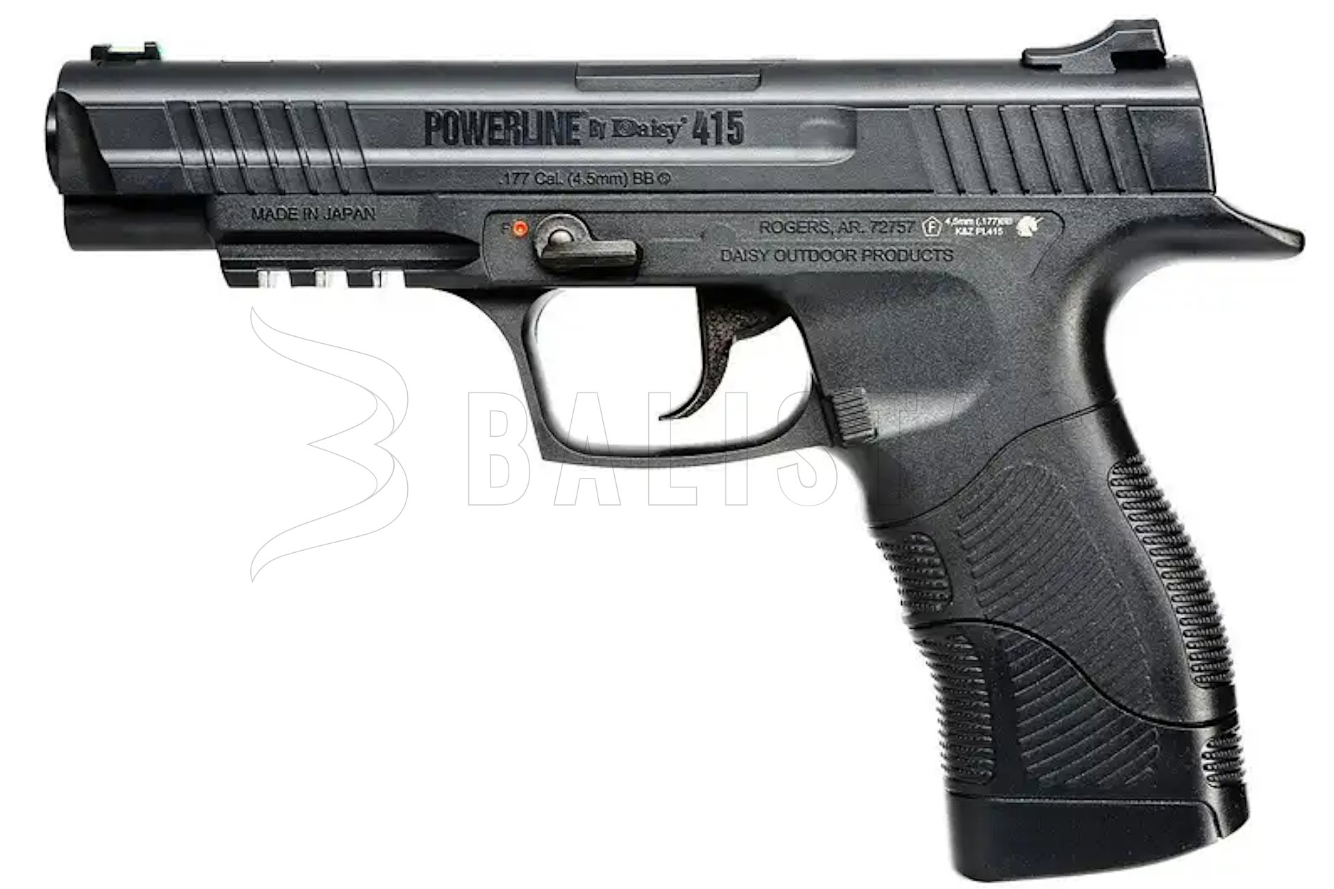 The Powerline 415 is an air pistol from the legendary US manufacturer Daisy. The slide and the frame are both made of highly durable polymer, which makes it really lightweight (only 422 g). The smoothbore barrel is made of steel.